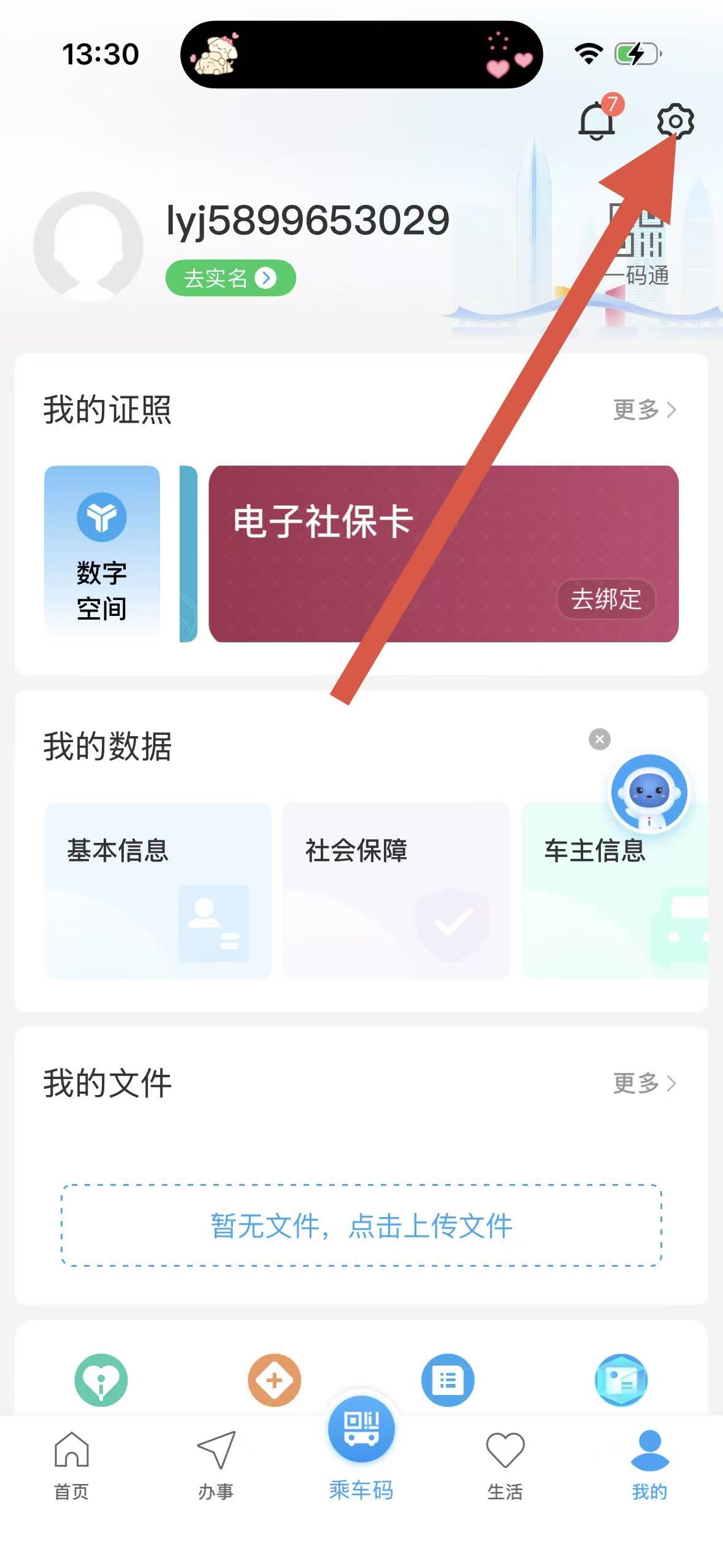 2、在個人頁面中,點擊右上角設(shè)置圖標,進入設(shè)置界面。