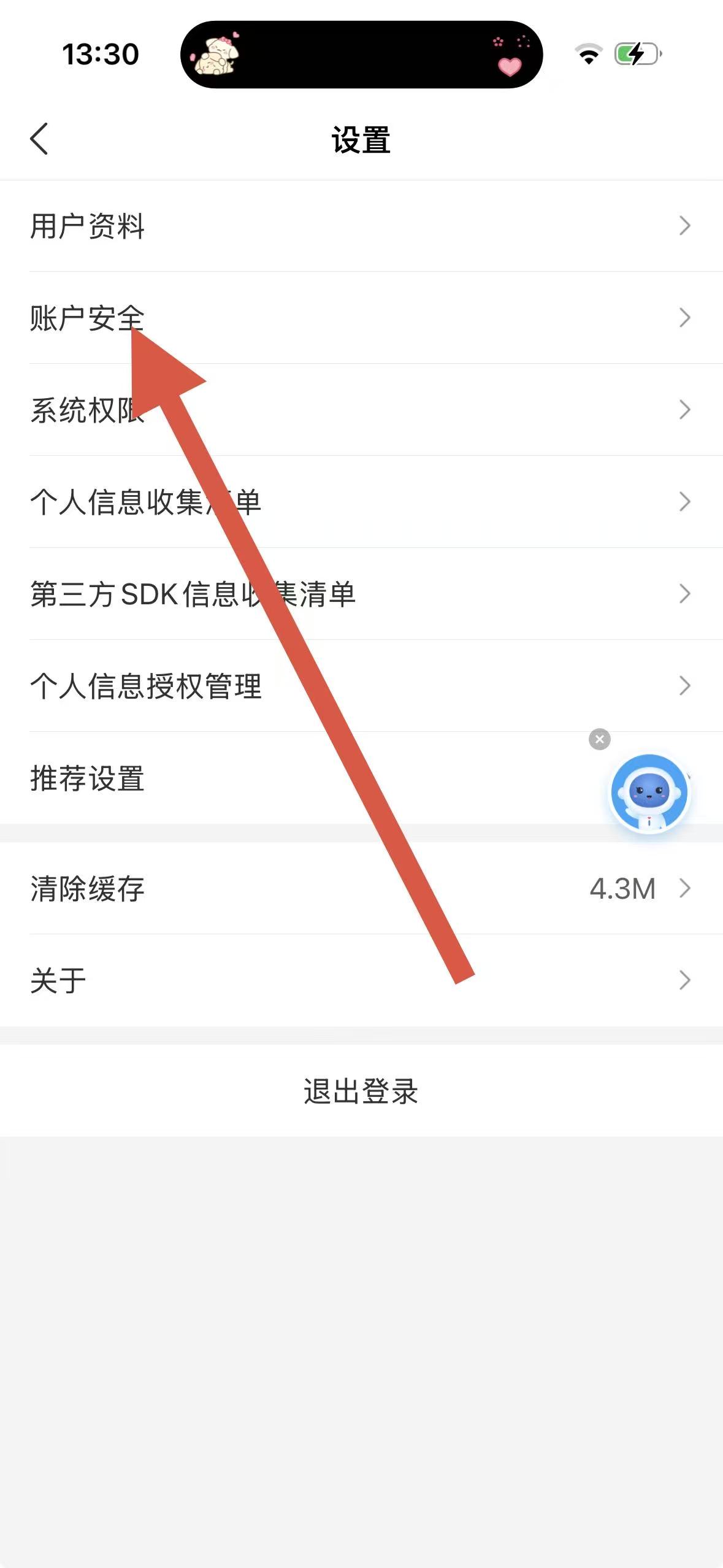 3、在設(shè)置界面里,點擊賬戶安全選項,進入賬戶安全設(shè)置頁。