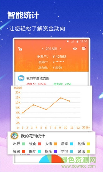 消費(fèi)圖形化:有折線圖、餅圖等簡潔圖表,透過趨勢圖和餅圖,讓你對你的花銷直觀分析!