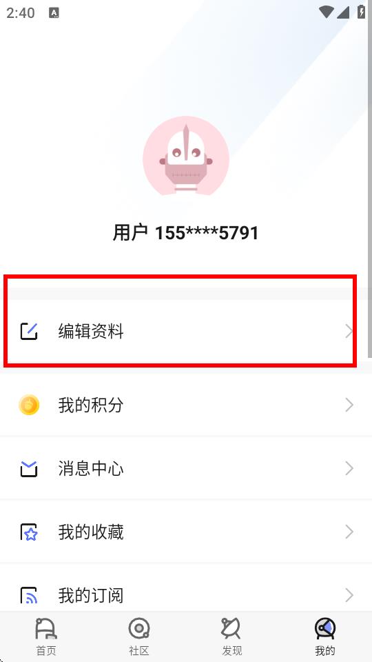 2、在個人頁面里找到編輯資料選項,點擊進(jìn)入資料編輯界面。