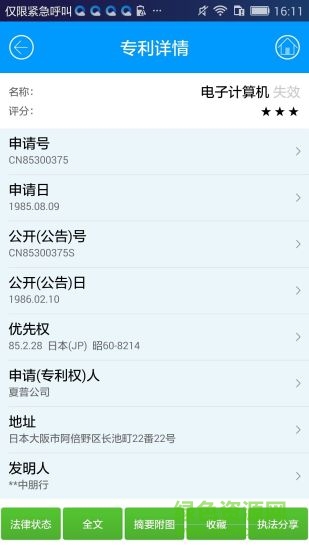 專利通是一款方便查詢專利信息的工具軟件,用戶可以查詢專利的詳細(xì)信息,全文信息,摘要附圖,以及對自己感興趣的專利進(jìn)行收藏語言