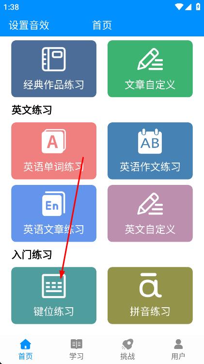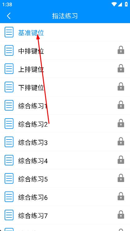 2、進入指法練習(xí)頁面,選擇想要練習(xí)的項目。