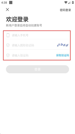 3、在登錄界面依次輸入手機號、圖形驗證碼、獲取并輸入驗證碼。