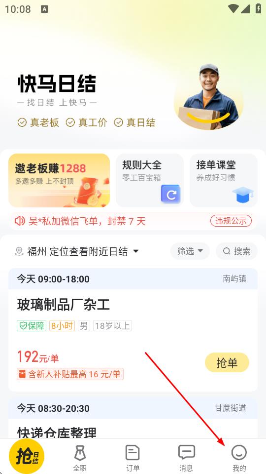 1、打開(kāi)快馬日結(jié)APP,點(diǎn)擊底部導(dǎo)航欄中的我的。