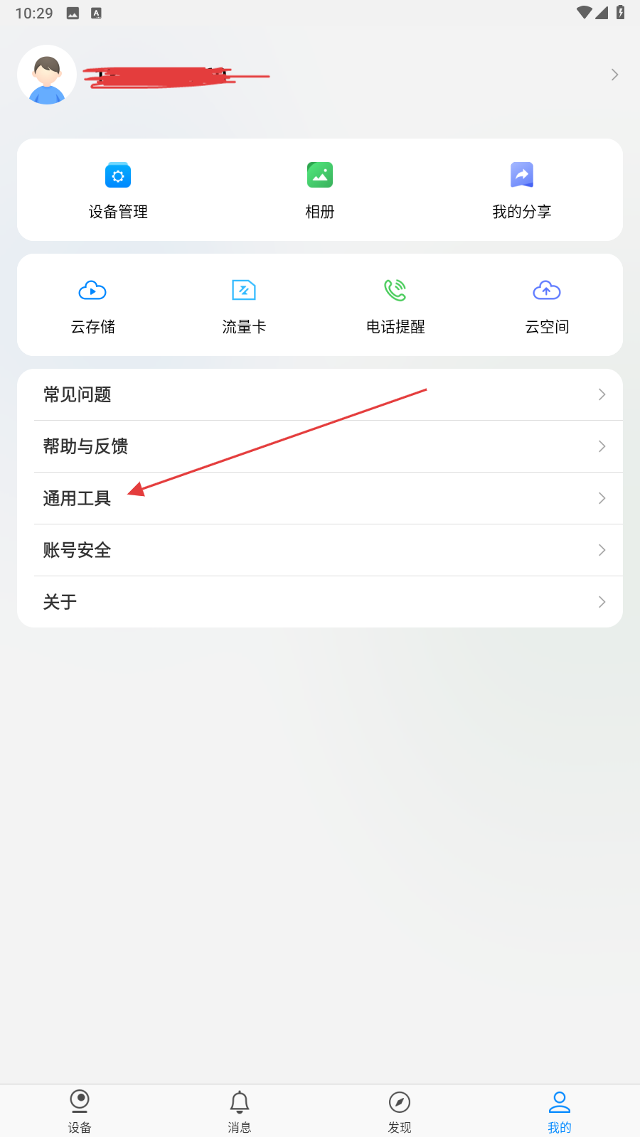 2、進(jìn)入我的頁面內(nèi),點(diǎn)擊通用工具的功能按鈕。