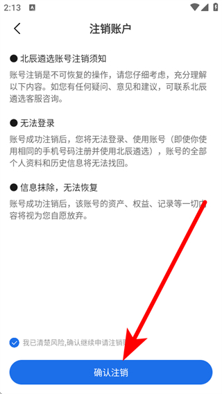 4、在說明頁面,勾選同意后點擊確認注銷,完成賬號注銷操作。