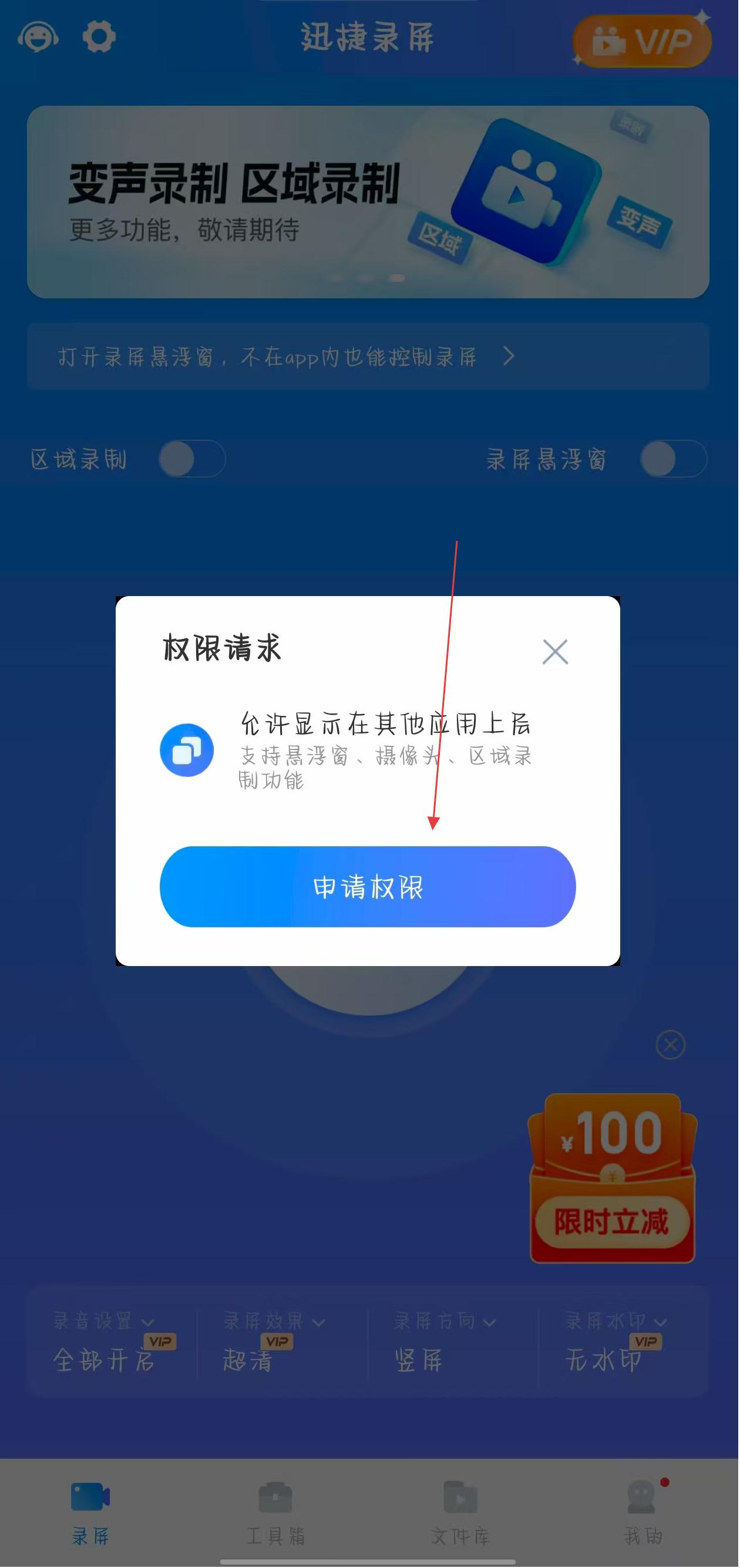 4、返回迅捷錄屏大師APP,錄屏懸浮窗功能已成功開啟。