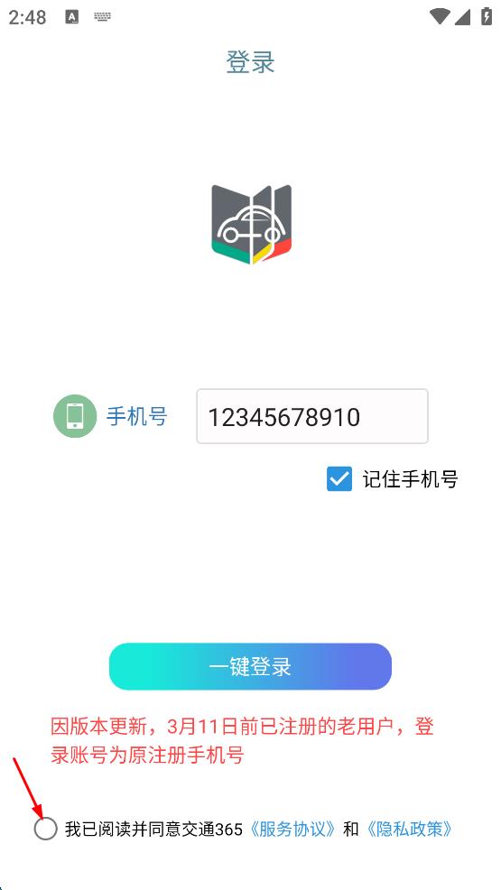 3、勾選我已閱讀并同意交通365相關(guān)協(xié)議選項(xiàng)。