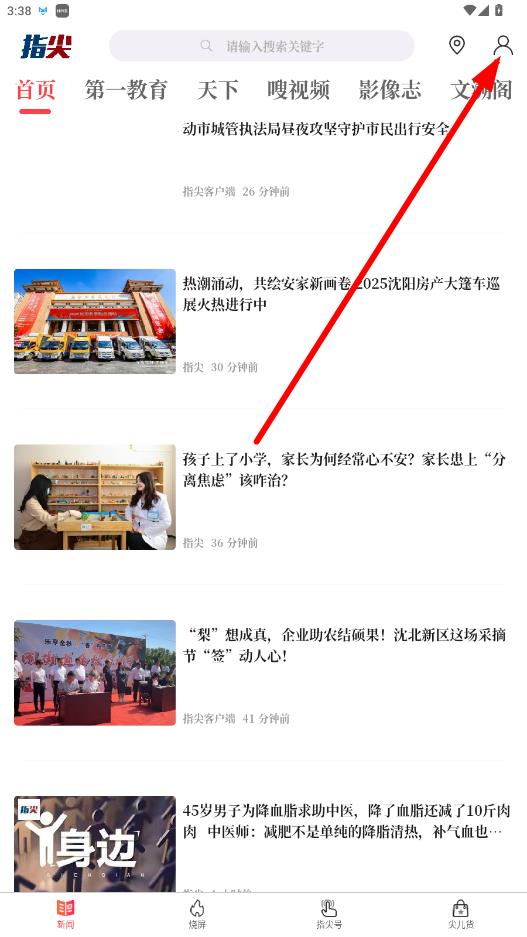 1、打開指尖app,點(diǎn)擊首頁右上角的個(gè)人中心圖標(biāo),進(jìn)入個(gè)人頁面。