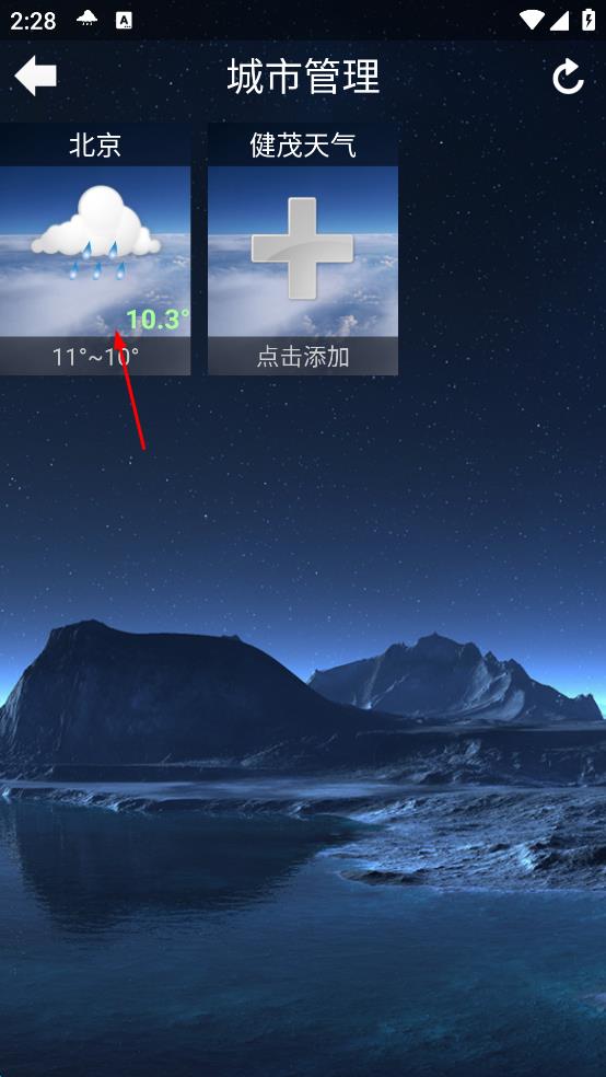 3、在城市管理頁面,點(diǎn)擊所選城市的天氣卡片,進(jìn)入該城市天氣詳情頁面。