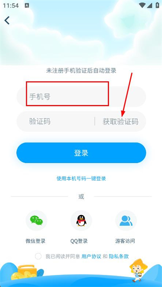 3、進(jìn)入登錄頁面后,輸入手機(jī)號,點擊獲取驗證碼。
