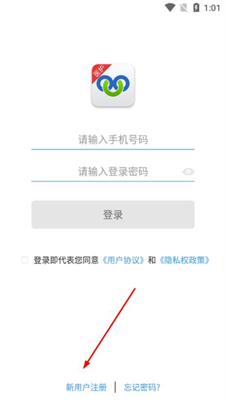 1、打開藍牛醫(yī)護APP,在登錄頁面點擊新用戶注冊。