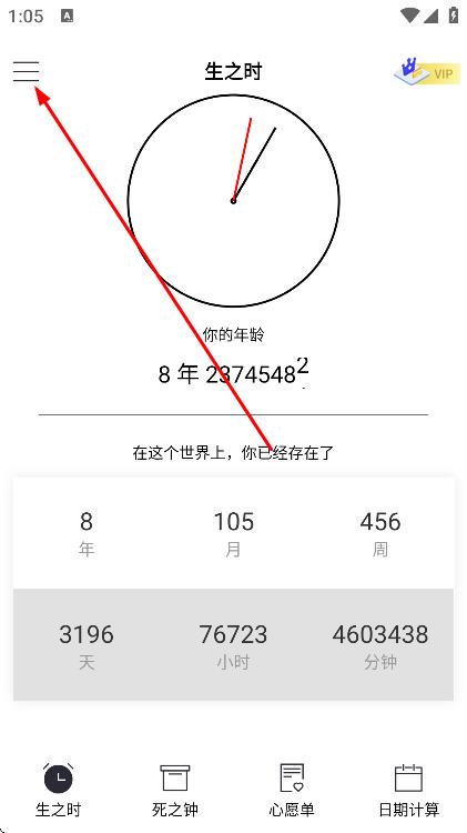 1、打開生命倒計(jì)時(shí)app,點(diǎn)擊左上角三條橫線圖標(biāo)。