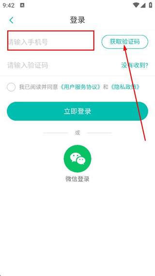 3、進(jìn)入登錄頁(yè)面后,輸入需要登錄的手機(jī)號(hào)并獲取驗(yàn)證碼。