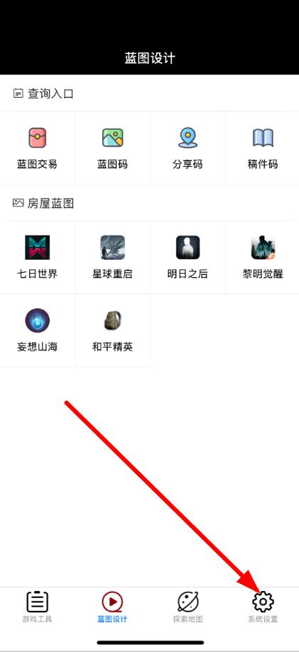 1、打開頑皮兔應用,進入藍圖設計界面,點擊底部導航欄中的系統(tǒng)設置。