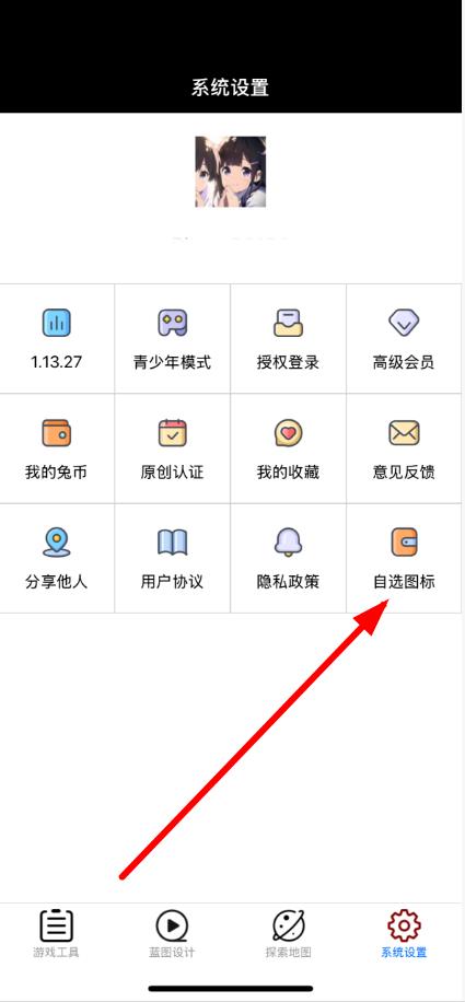 3、進入自選圖標界面后,點擊上方需要更換圖標的對應位置。