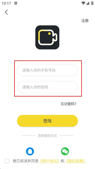 3、進(jìn)入登錄頁面,輸入手機(jī)號(hào)碼和密碼。