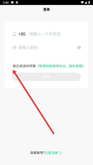 2、在進(jìn)入到登錄頁(yè)面中,開(kāi)始登錄前,需先點(diǎn)擊勾選我已閱讀并同意按鈕后進(jìn)行操作。