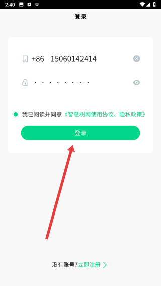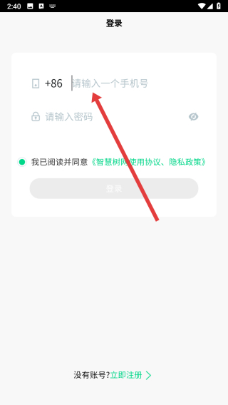 3、在勾選好同意按鈕后,可以在上方輸入框依次填寫手機(jī)號(hào)和密碼信息。