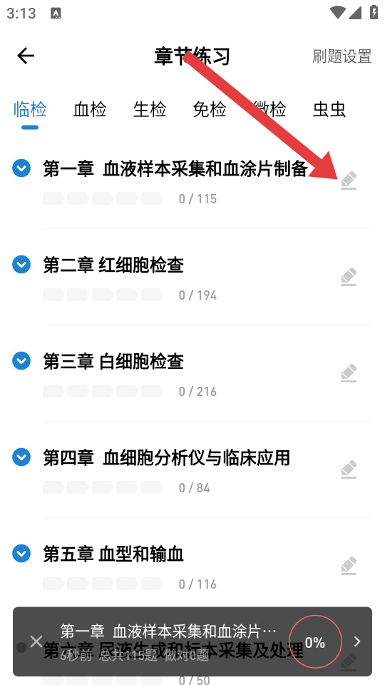 2、在章節(jié)練習(xí)列表中,選擇目標(biāo)章節(jié),進(jìn)入章節(jié)練習(xí)的界面。