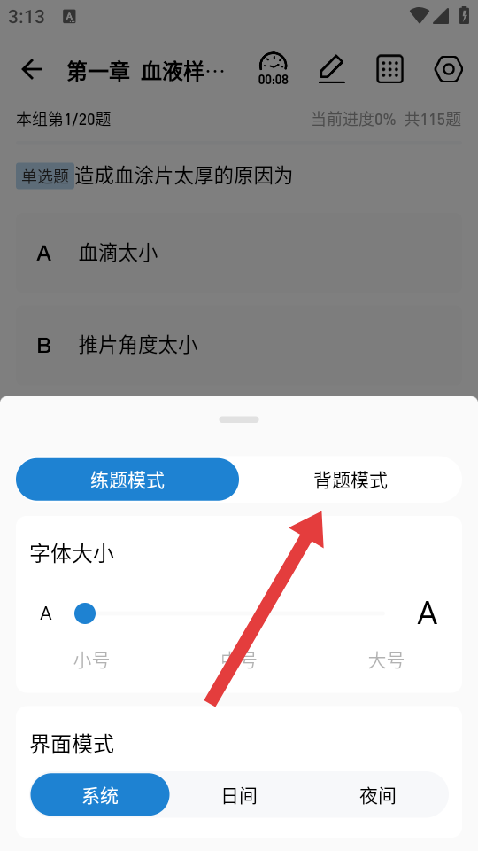 4、在設(shè)置的選項(xiàng)中,需要點(diǎn)擊背題模式,完成背題模式設(shè)置。