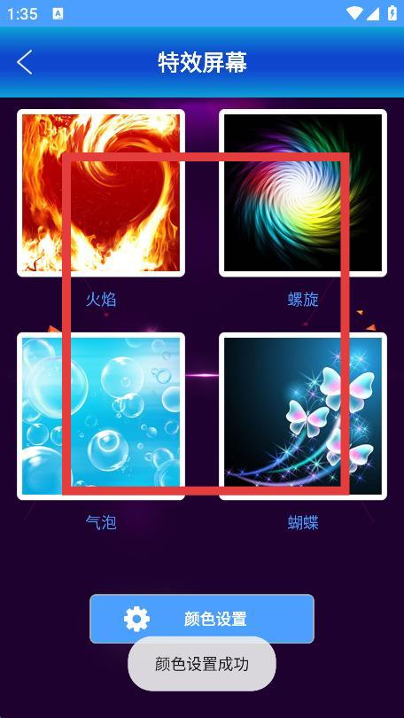 4、設(shè)置好顏色后,選擇喜歡的特效,點(diǎn)擊即可成功設(shè)置。
