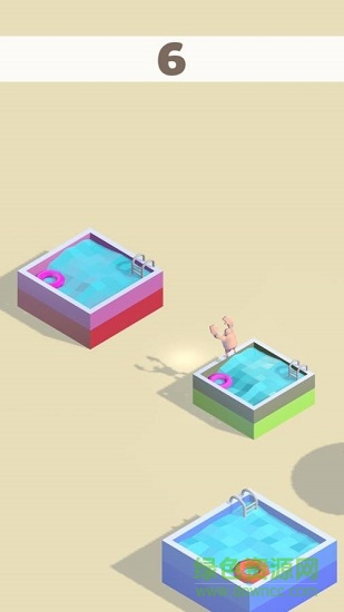 3、玩法很有趣,目的就是不斷讓小人跳躍到下一個(gè)泳池,按住屏幕不放來(lái)完成蓄力;