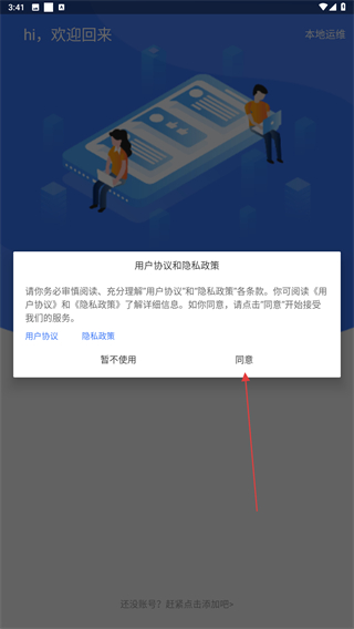 1、打開警云APP,進入時會彈出用戶協(xié)議和隱私政策,點擊同意的按鈕。
