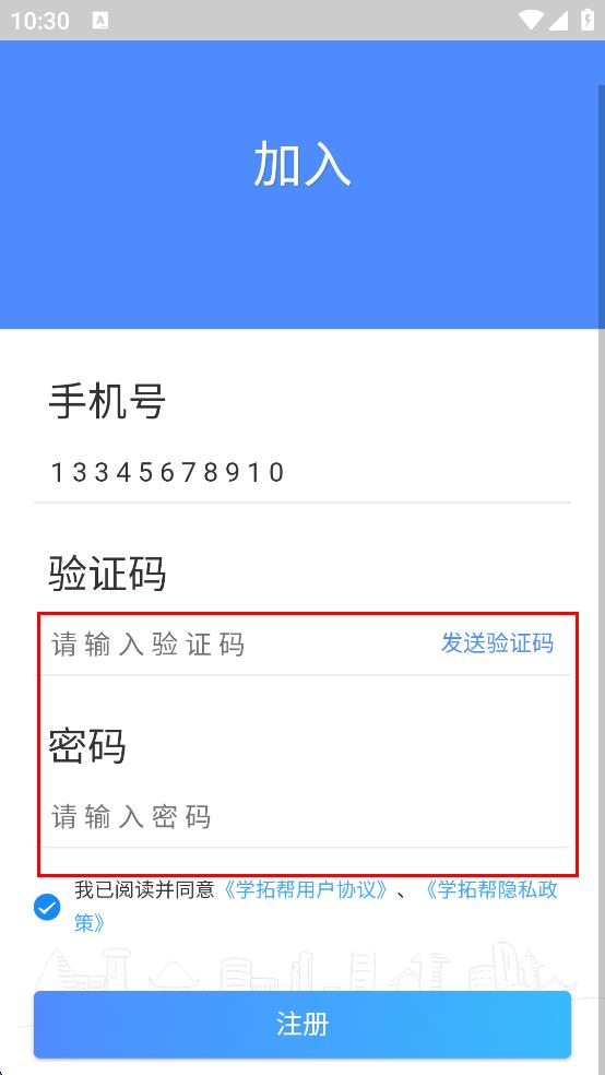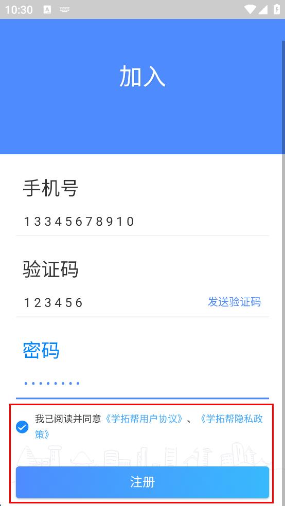 4、確認(rèn)已勾選相關(guān)協(xié)議,點擊注冊,即可完成學(xué)拓幫的注冊操作。