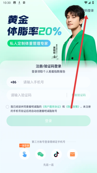 2、在進入到登錄頁面中,可以點擊右上方密碼登錄按鈕,切換登錄方式。