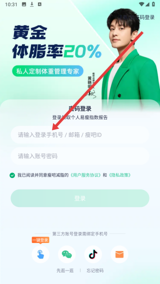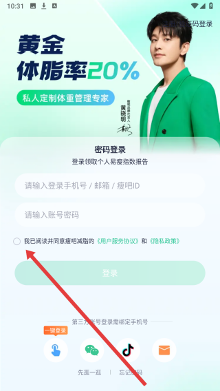 3、在切換好密碼登錄方式后,需先點擊勾選按鈕同意協(xié)議政策。