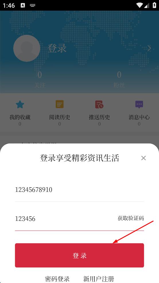 3、在登錄頁面輸入手機號,點擊“獲取驗證碼”,再在驗證碼輸入框中輸入驗證碼。