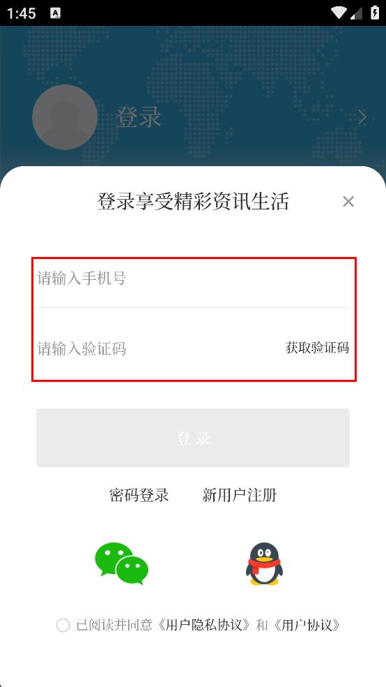 4、勾選“已閱讀并同意用戶隱私協(xié)議和用戶協(xié)議”,然后點擊“登錄”按鈕。