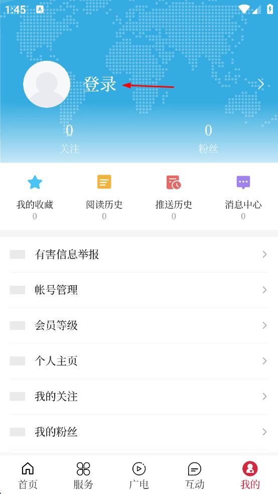 2、在“我的”頁面,點擊“登錄”按鈕,進入登錄頁面。