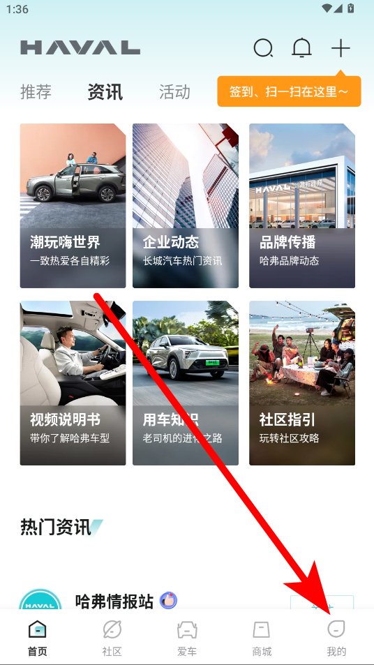 1、打開哈弗智家APP,在首頁點擊右下角我的選項,進入個人中心界面。