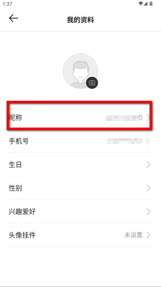 3、在我的資料頁面,點擊昵稱選項,進入昵稱修改界面。