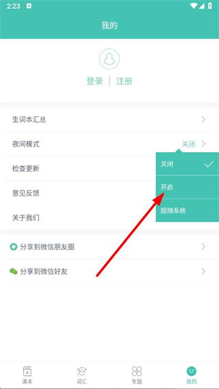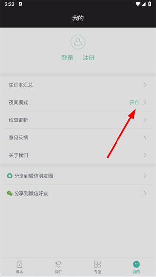 3.單詞譯文隱藏和顯示、字體樣式和大小、夜間模式等都可以自由設(shè)置,學(xué)習(xí)更方便。