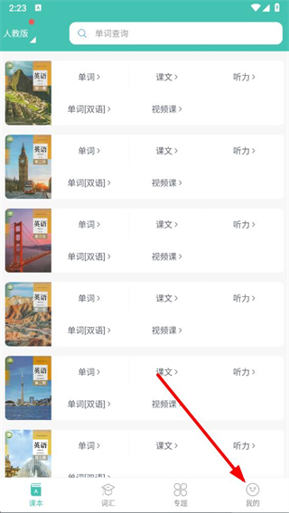1、打開(kāi)高中單詞課堂app,在底部導(dǎo)航欄中點(diǎn)擊我的選項(xiàng),進(jìn)入個(gè)人相關(guān)頁(yè)面。