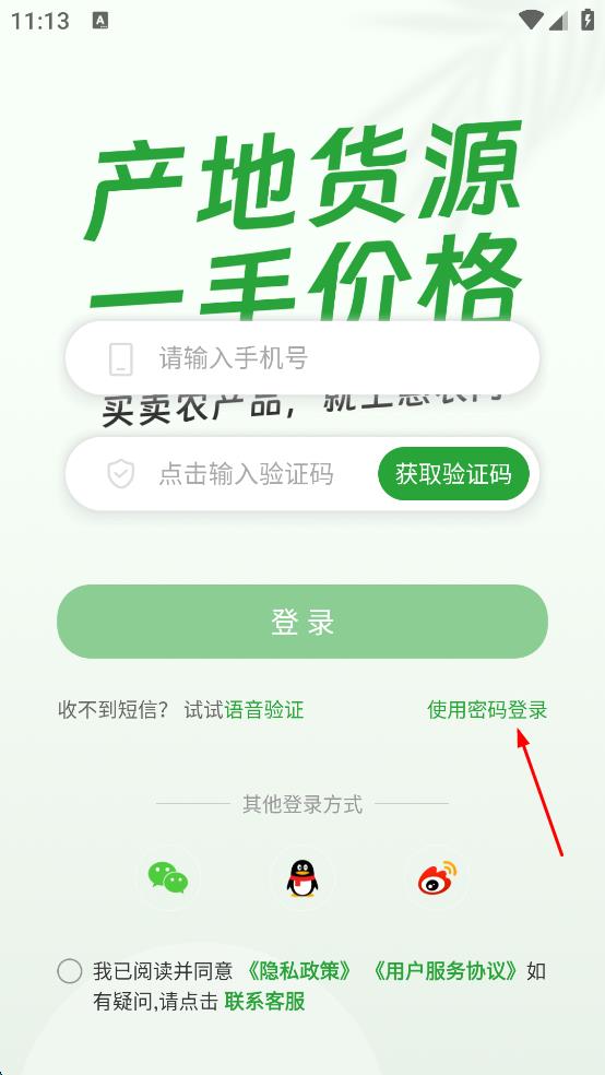 2、進入登錄界面后,點擊使用密碼登錄選項。