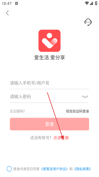 3、在登錄界面下方,點擊點擊注冊,進入新用戶注冊頁面。