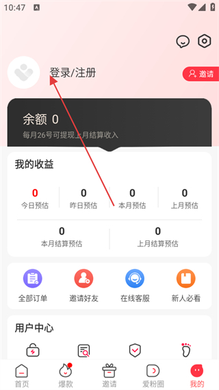 2、在個人頁面中,點擊登錄/注冊選項,進入登錄界面。