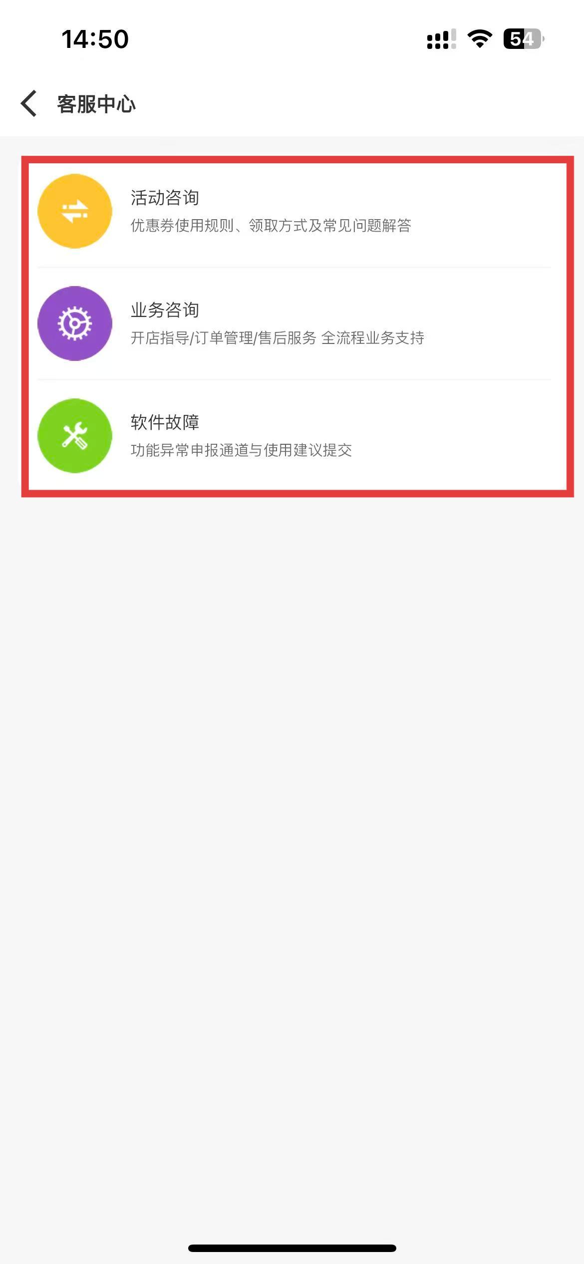 3、進(jìn)入客服中心頁面后,選擇不同咨詢分類,根據(jù)自己的需求點(diǎn)擊相應(yīng)選項(xiàng),即可與客服進(jìn)行聯(lián)系咨詢。