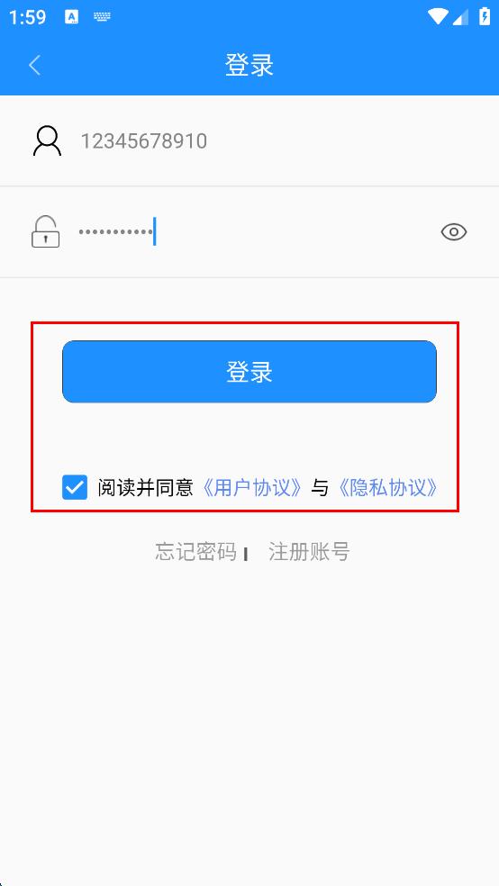 4、勾選閱讀并同意用戶協(xié)議與隱私協(xié)議,然后點擊藍色的“登錄”按鈕,即可完成登錄。