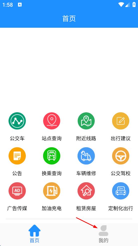 1、打開公交服務(wù)類軟件,進入首頁后,點擊頁面右下角“我的”選項,進入個人相關(guān)頁面。