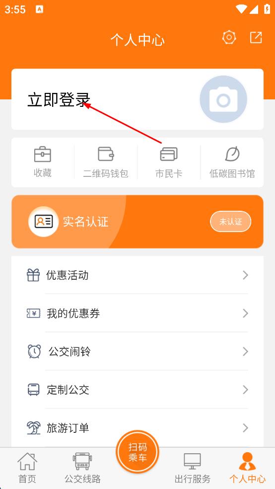 2、在個人中心頁面,點擊“立即登錄”字樣,進(jìn)入登錄界面。