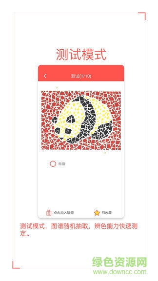 色盲自測app是一款簡單實用的色盲檢查軟件,涵蓋了多套色盲測試圖,支持讀圖模式、練習(xí)模式、測試模式等測試方法,用戶可以用來自測,操作簡單,運行穩(wěn)定,易錯的題目還可以隨時收藏到錯題本,感興趣的朋友快來下載吧!