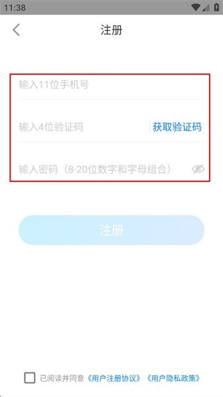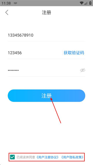 3、勾選已閱讀并同意用戶注冊(cè)協(xié)議和用戶隱私政策,點(diǎn)擊注冊(cè)按鈕完成注冊(cè)。