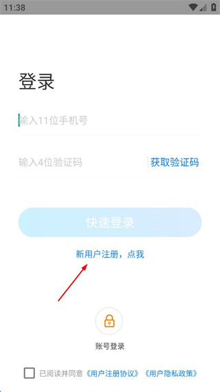 1、在登錄頁(yè)面點(diǎn)擊新用戶注冊(cè)點(diǎn)我選項(xiàng),進(jìn)入注冊(cè)頁(yè)面。