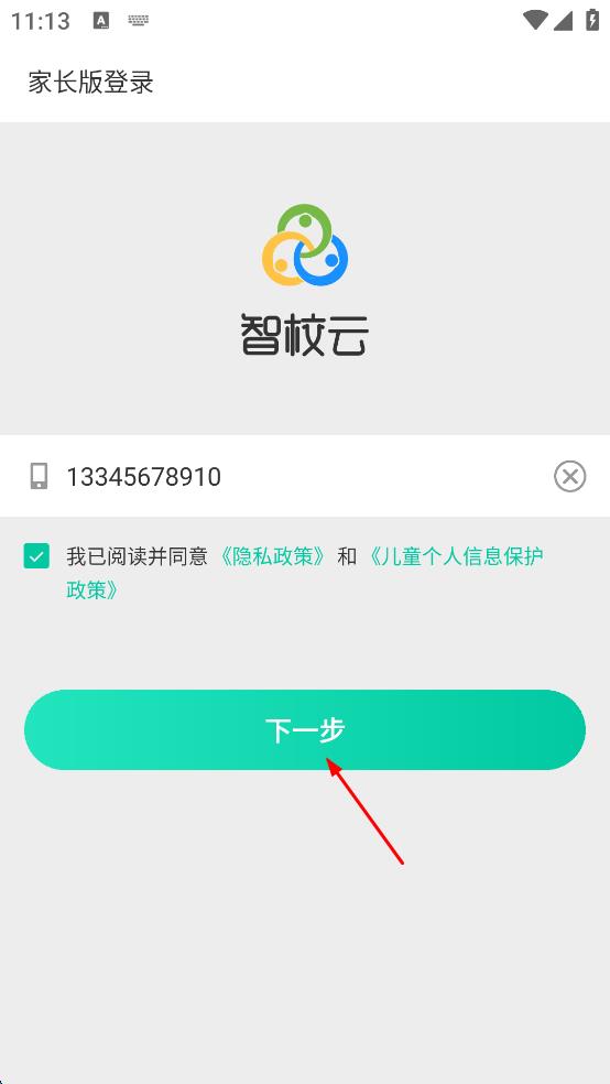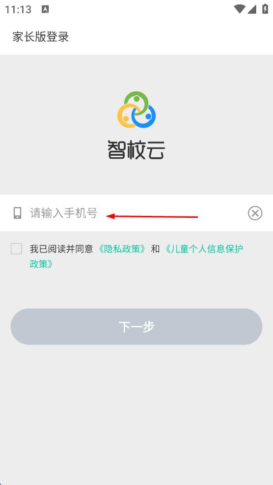 2、在家長(zhǎng)版登錄界面,找到“請(qǐng)輸入手機(jī)號(hào)”輸入框,輸入手機(jī)號(hào)。