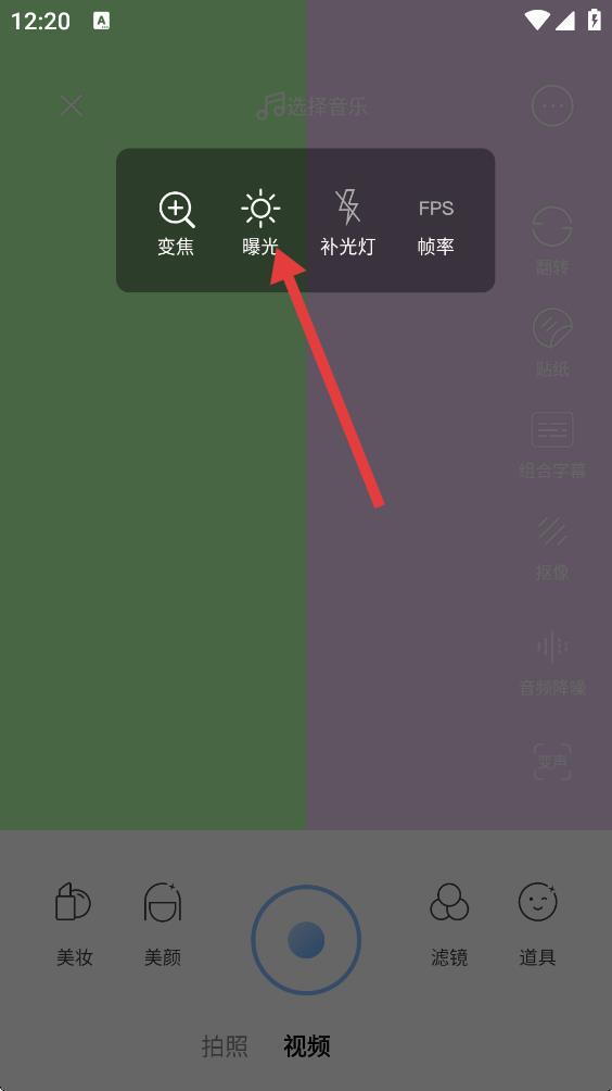 3、在彈出的設(shè)置選項(xiàng)中,點(diǎn)擊曝光按鈕。